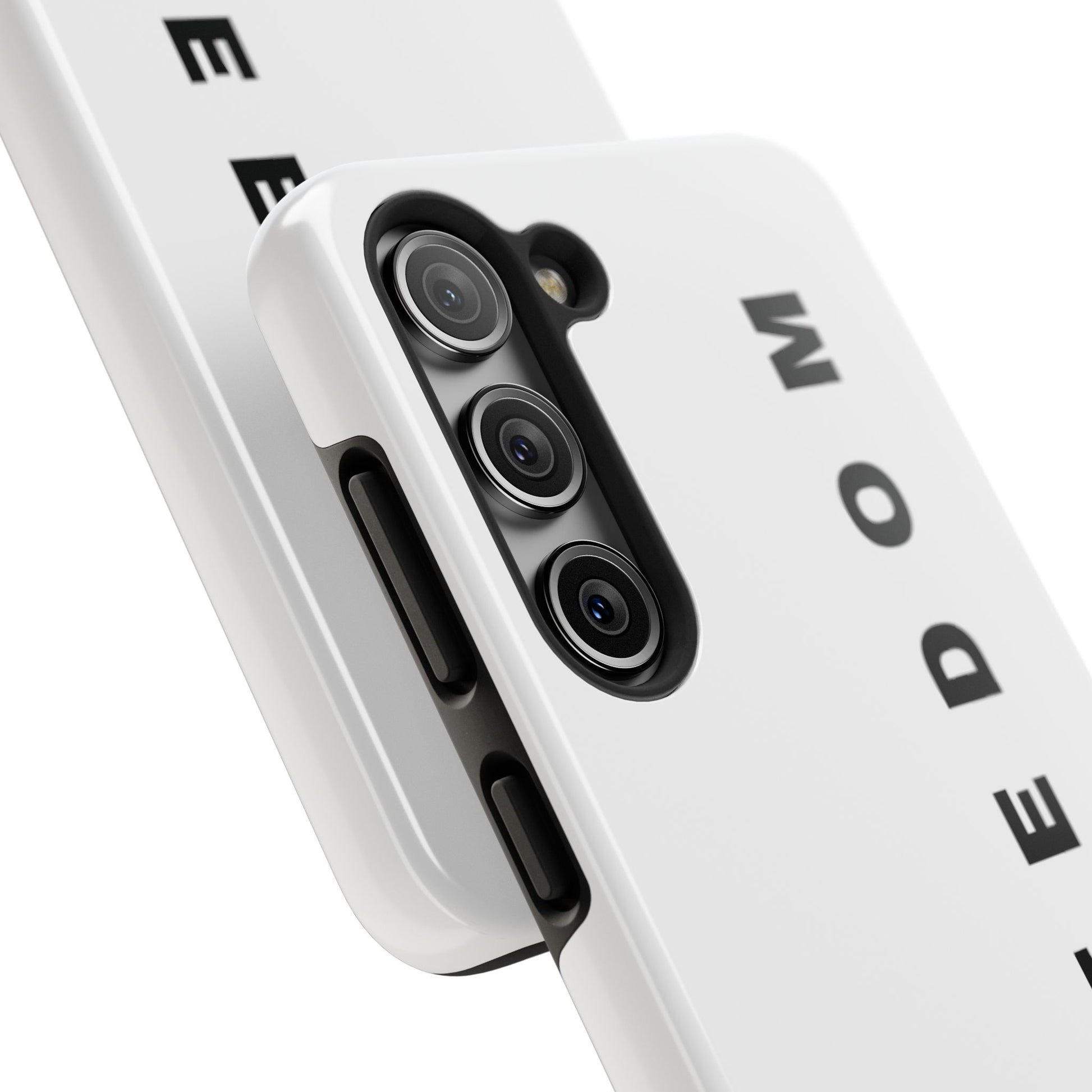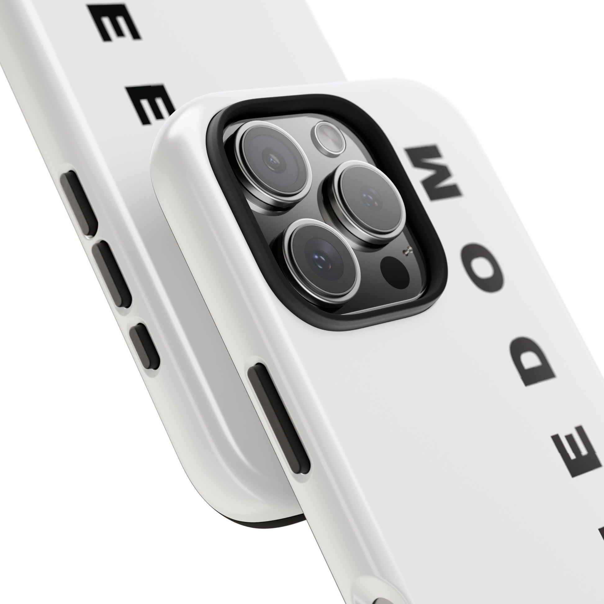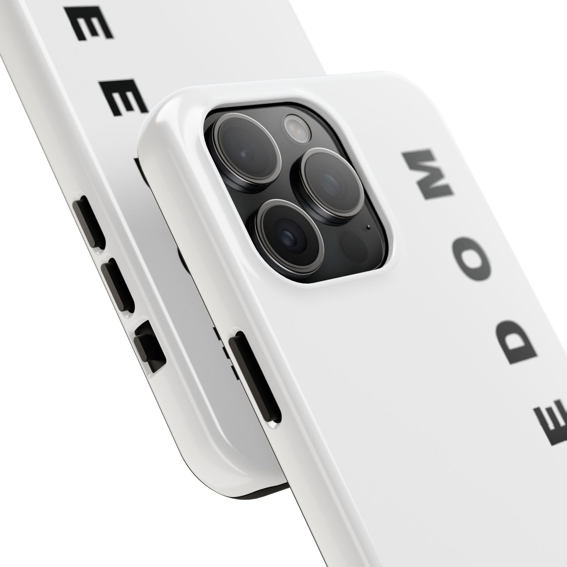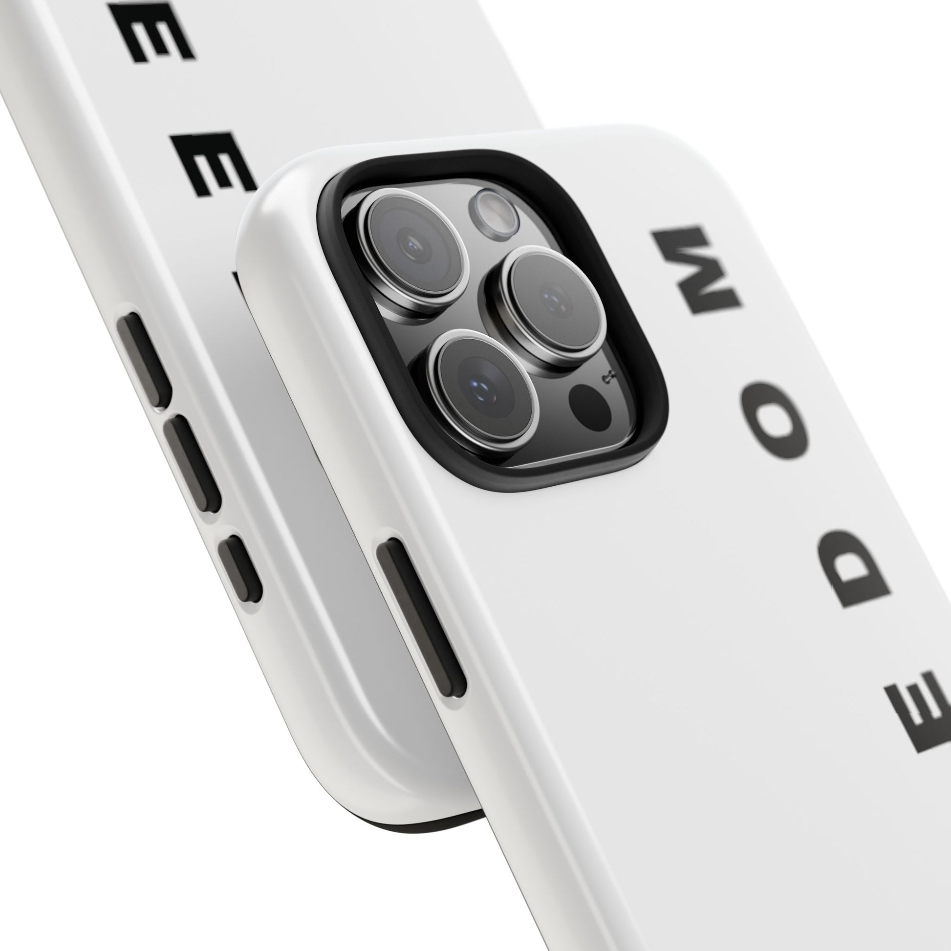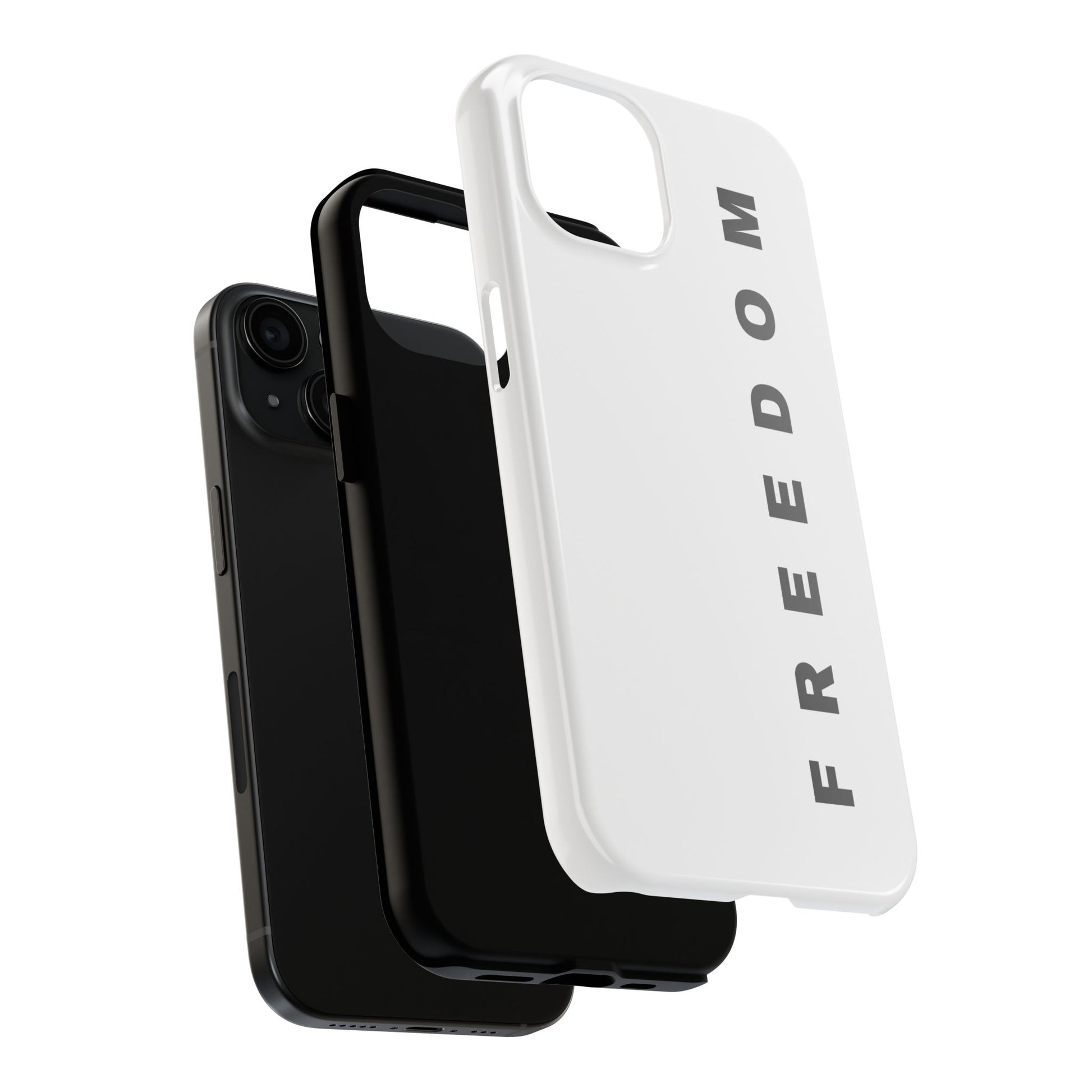 This case keeps that reminder close. Simple. Bold. Clear. FREEDOM.
